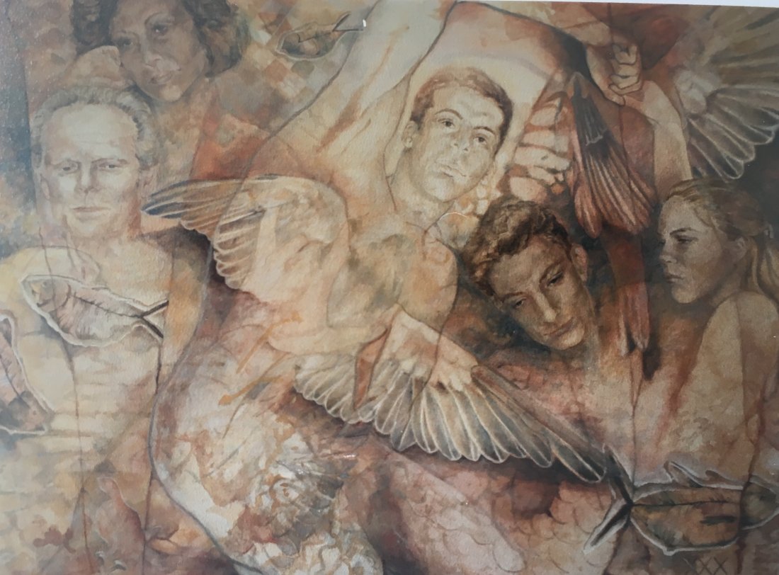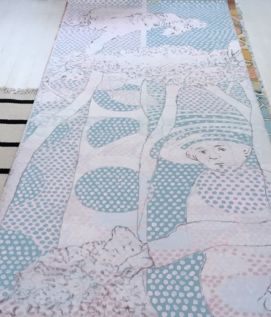 showed the sketches and made this tempera on canvas in light colors