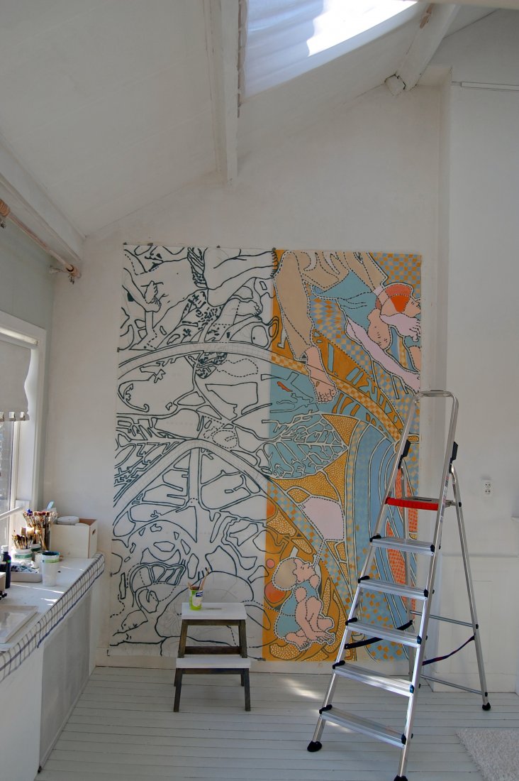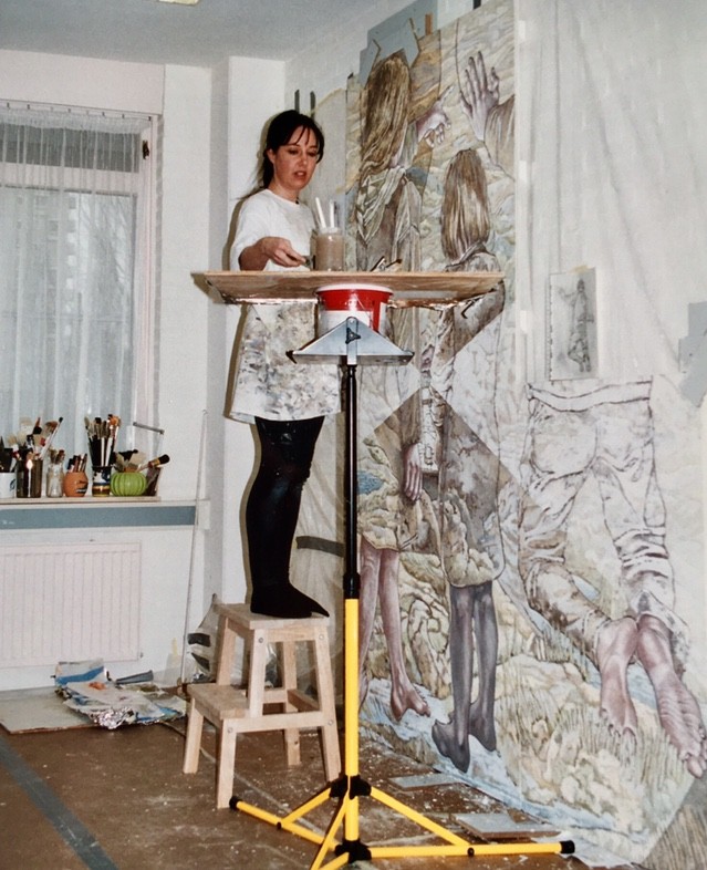 mar-jon was learning all kind of ideas in paint , pigments , stuc etc and developed her own technic