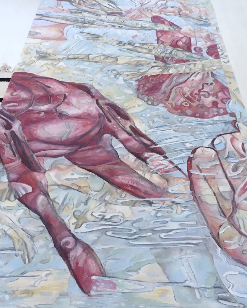 showed the sketches and made this tempera on canvas in light colors